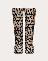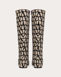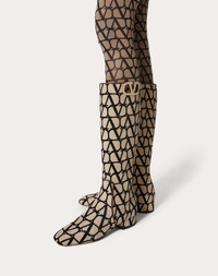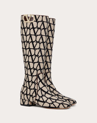 Valentino Garavani VLogo Type boot in Toile Iconographe fabric with leather details - Cut-out leg decorated with VLogo Type accessory in platinum finish - Side zipper closure - Heel height: 30 mm / 1.2 in. - Boot shaft height: 39 cm / 15.4 in.; Italian size 37 - Made in Italy Product code: WS0FT9EBH_6ZN