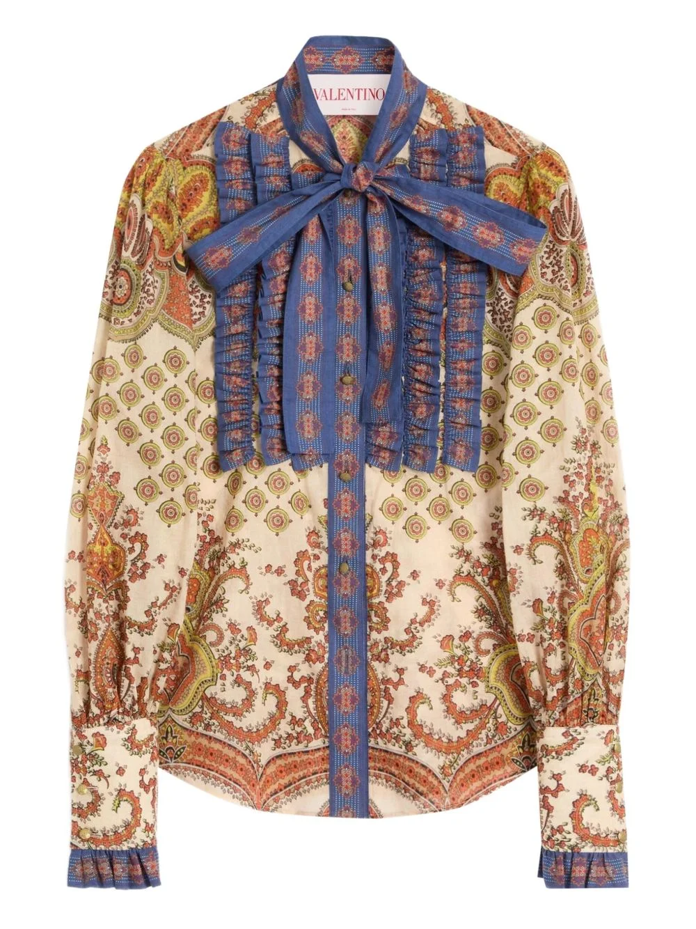 Medaglioni Voyage Imaginaire-print shirt Highlights - Light beige - Front button fastening - Buttoned cuffs - Ruffled detailing - Contrasting panel Made in Italy Composition Cotton 100% SIZE & FIT FittingInformation Designed for a relaxed fit, this piece allows for comfort and movement when worn Made from a lightweight non-stretch fabric