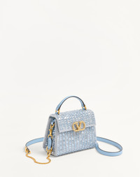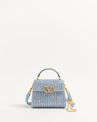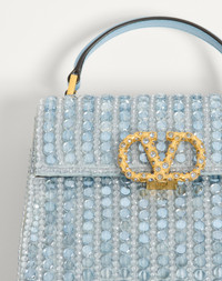 Valentino Garavani VSLING mini handbag with glass bead embroidery and VLogo Signature jewel closure. Equipped with a handle and an extendable shoulder strap, the bag can be handheld or worn crossbody/over the shoulder. - Antique brass-finish hardware - Magnetic closure with logo embellished with Swarovski® crystals - Leather shoulder strap with adjustable chain element - Protective feet - Nappa leather lining. Interior: open slip pocket - Shoulder strap drop length: min. 45 cm to max. 59 cm / min. 17.7 in. to max. 23.2 in. - Dimensions: W19xH13xD9 cm / W7.4xH5.1xD3.5 in. - Made in Italy This product contains magnets. Please consider if this product will be worn within 15 cm from any implanted device. Any concerns please contact your healthcare professional. Product code: 6W2B0G97IYA_R6N