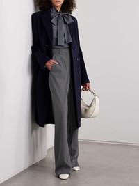 EDITORS'NOTES Valentino Garavani's pants have been tailored in Italy from a lightly structured wool-blend in an anthracite shade. They're designed to sit high on the waist and have pressed creases through the wide legs. Style yours with a tucked-in blouse or sweater. SIZE & FIT Model measurements: - Fits true to size, take your normal size - High-rise, designed for a wide-leg fit - Mid-weight, slightly stretchy fabric - Model is 175cm/ 5'9" and is wearing an IT 40 - Bust: 81cm/ 32" - Waist: 65cm/ 26" - Hip: 90cm/ 35" DETAILS & CARE - Anthracite wool-blend - Concealed button, hook and zip fastening at front - 98% virgin wool, 2% elastane; pocket lining: 100% silk - Dry clean