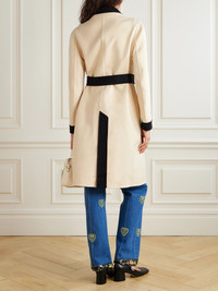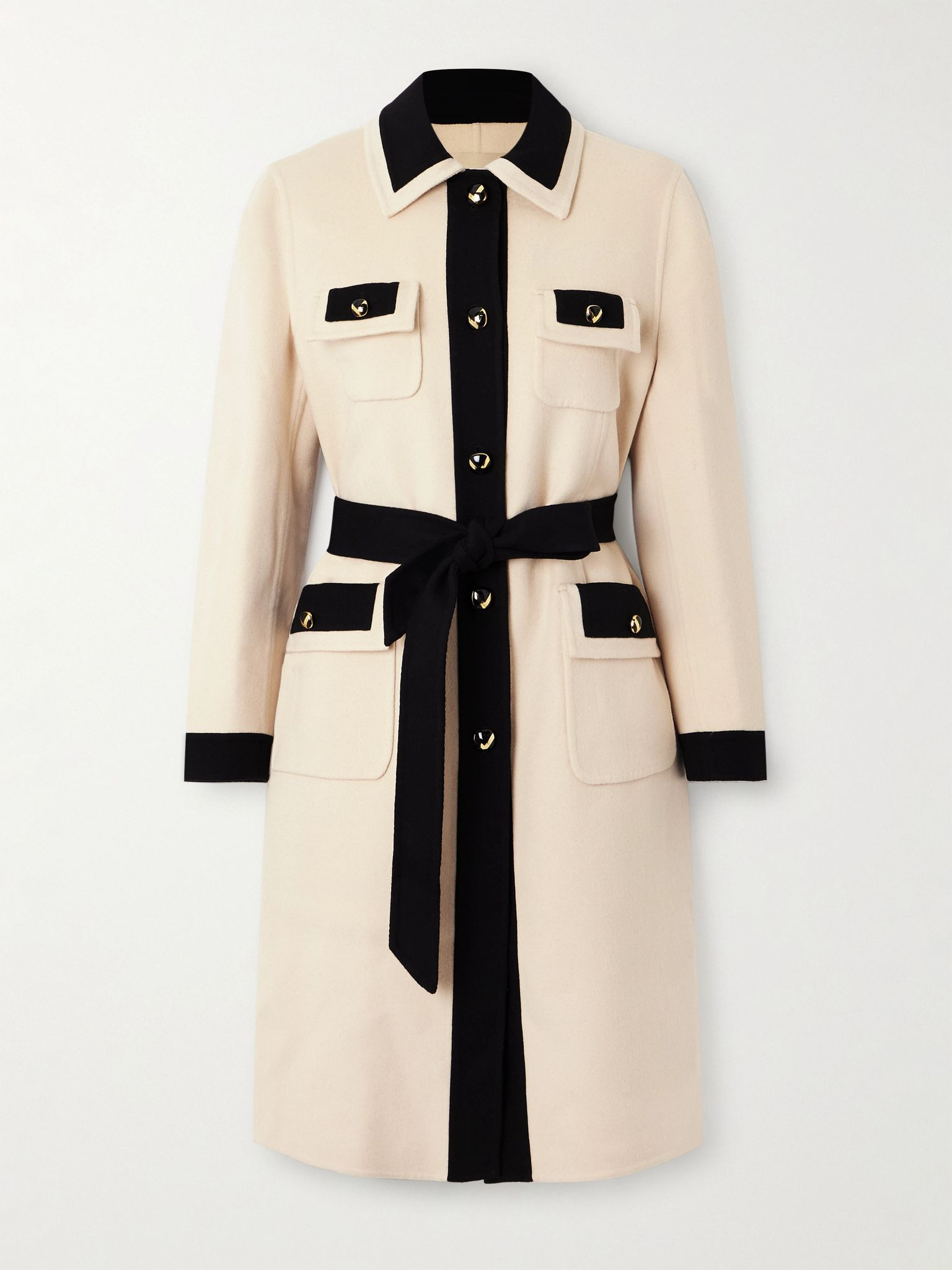 Belted two-tone brushed wool and cashmere-blend coat Cream