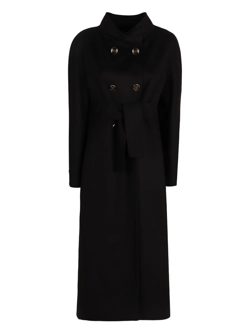 double-breasted belted coat Highlights - Black - Double-breasted fastening - Logo detail buttons - Coordinated waist belt - Cashmere-wool blend Made in Italy Composition Cashmere 90%, Virgin Wool 10% SIZE & FIT FittingInformation Designed for a slim fit that sits just away from the body offering a close yet comfortable fit The tie fastening gives an adaptable and personalised fit Made from a midweight non-stretch fabric Washing instructions Read Manufacturer Guidelines