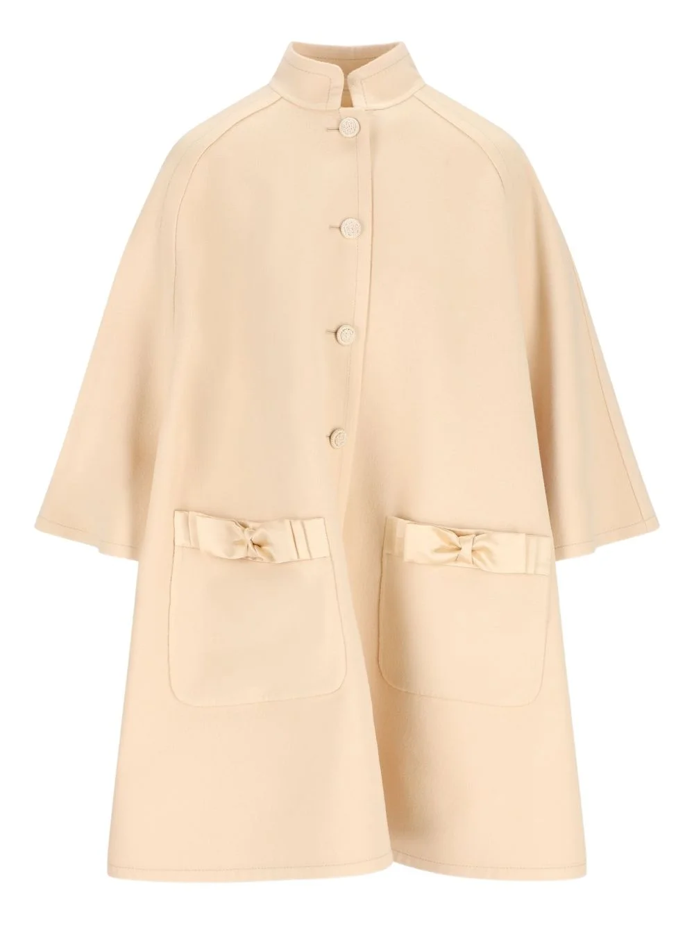 bow-embellished cape coat Highlights - Beige - High collar - Button closure - Front pockets - Satin bows pocket detail - Flared shape Made in Italy Composition Wool 90%, Cashmere 10% Washing instructions Dry Clean Only