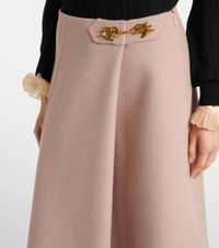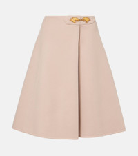 Exuding preppy sophistication, this skirt from Valentino is a beloved addition to your everyday wardrobe. Crafted from a luxurious wool and cashmere blend, this A-line design falls to knee-length and is finished with elegant golden hardware. Product Details - Material: 90% wool, 10% cashmere - Care instructions: dry clean - Made in Italy - Designer color name: Rose Beige - Closure: invisible zipper - Item number: P01006628 Size & Fit - True to size - Non-stretchy fabric - The model seen in the picture is 178cm-5'10" and wearing a size IT 40