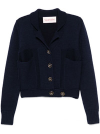 logo-buttons cardigan Highlights - Valentino ready to wear - Navy blue - Front button fastening - Two side patch pockets - Shawl collar Made in Italy Composition Wool 78%, Cotton 22%