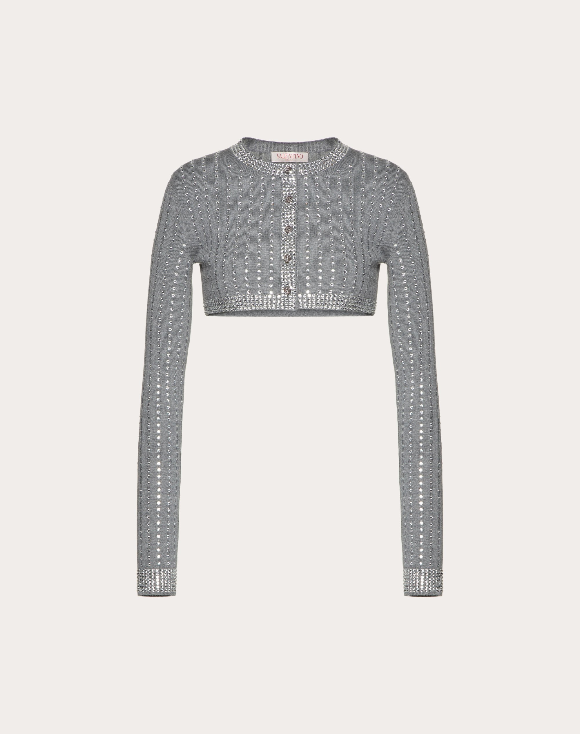 Valentino Wool cardigan with rhinestones - Cropped fit - Rhinestone embroidery - Front button fastening - Wool and rhinestones (100% Virgin Wool) - Unlined - Length: 30 cm / 11.8 in. from the shoulders in an Italian size S - Sleeve length: 80 cm / 31.4 in. from the centre back in an Italian size S - The model is 176 cm / 5'9" tall and wears an Italian size S - Made in Italy The look of the model is completed by a Valentino Garavani Locò Bag. Product code: 3B3KA05U82F_080 Valentino Wool cardigan with rhinestones - Cropped fit - Rhinestone embroidery - Front button fastening - Wool and rhinestones (100% Virgin Wool) - Unlined - Length: 30 cm / 11.8 in. from the shoulders in an Italian size S - Sleeve length: 80 cm / 31.4 in. from the centre back in an Italian size S - The model is 176 cm / 5'9" tall and wears an Italian size S - Made in Italy The look of the model is completed by a Valentino Garavani Locò Bag. Product code: 3B3KA05U82F_080