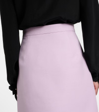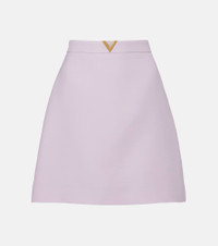 Embrace timeless elegance with this piece from Valentino. Crafted in Italy from wool and silk, this miniskirt is crafted in a vibrant purple hue and features gold-toned hardware. Product Details - Material: 65% wool, 35% silk - Care instructions: dry clean - Made in Italy - Designer color name: Rash - Item color: purple - Lining: 100% silk - Hardware color: gold - Closure: concealed zipped side - Item number: P01108201 Size & Fit - True to size - Non-stretchy fabric - High-waisted - The model seen in the picture is 178cm-5'10" and wearing a size IT 40