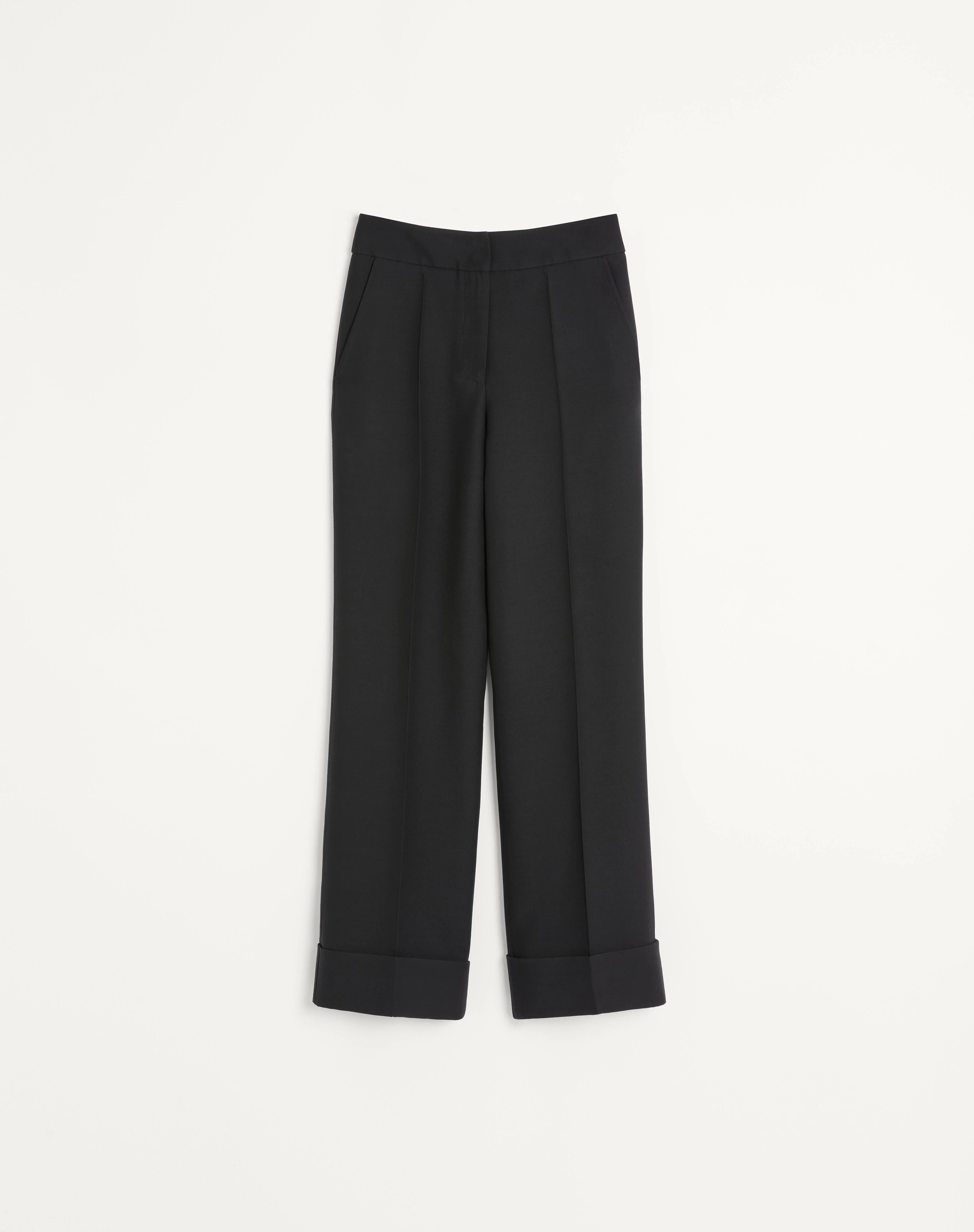 Crepe Couture Pants - Cuffed hem - Side zipper and hook-and-eye closure - Crepe Couture (65% Virgin Wool, 35% Silk) - Cotton Flower Lining (100% Cotton) - Length: 105 cm / 41.3 in. from the waist in an Italian size 40 - Leg opening: 26.5 cm / 10.4 in. in an Italian size 40 - The model is 176 cm / 5'9" tall and wears an Italian size 40 - Made in Italy The look of the model is completed by Valentino Garavani Hi Dolly Shoes. Product code: 7B3RB6N71CF_0NO