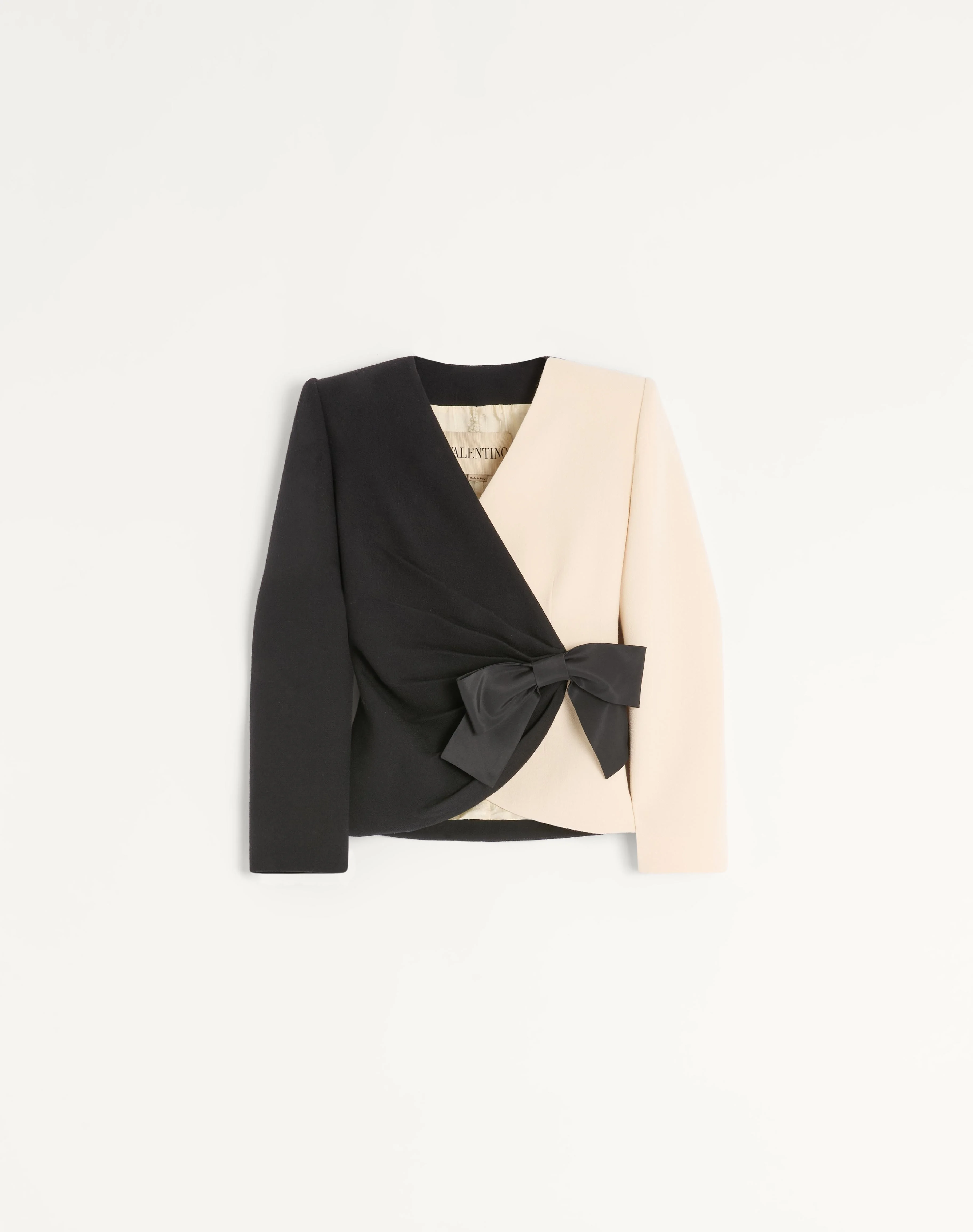 WOOL CREPE JACKET WITH CONTRASTING BOW