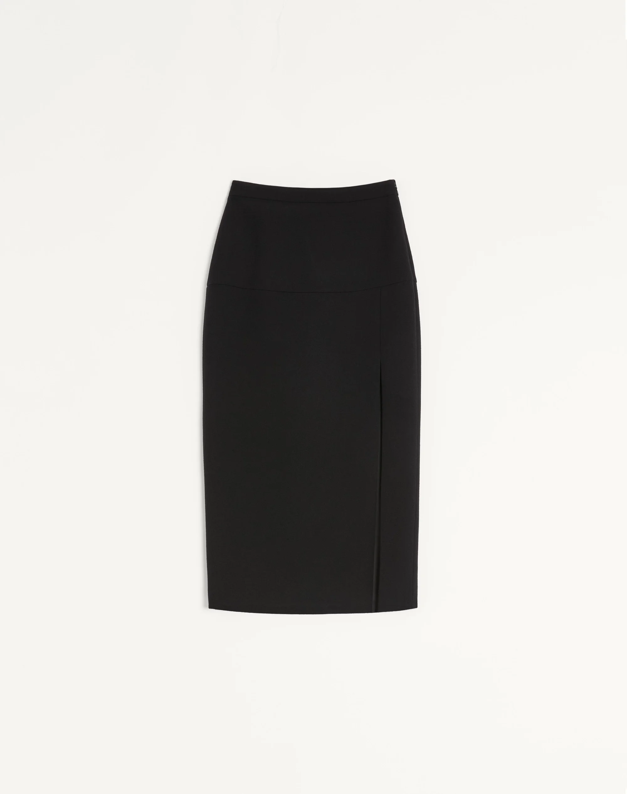 Wool Crepe Midi Dress - Side slit - Rear zipper closure - Wool Crepe (100% Virgin Wool) - Habotai Lining (100% Silk) - Length: 125 cm / 49.2 in. from the shoulders in an Italian size 40 - The model is 176 cm / 5'9" tall and wears an Italian size 40 - Made in Italy The look of the model is completed by Valentino Garavani Drip Rose Shoes. Product code: 7B0RAEC09Q0_0NO