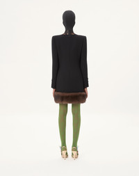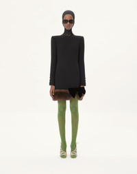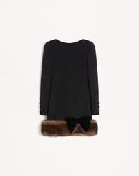 Short dress in Wool Crepe with Shearling trim - Velvet bow detail - Shoulder straps - Rear zipper and hook-and-eye closure - Wool Crepe (100% Virgin Wool) - Georgette Stretch lining (91% Silk, 9% Elastane) - Length: 87 cm / 34.3 in. from the shoulders in an Italian size 40 - The model is 176 cm / 5'9" tall and wears an Italian size 40 - Made in Italy The look of the model is completed by Valentino Garavani Dans Le Foyer Shoes. Product code: 7B0VAGF59Q0_0NO