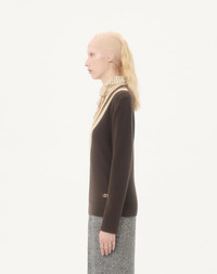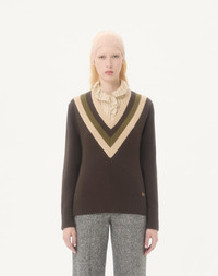 Wool sweater - V neckline - V logo detail - Wool (100% Virgin Wool) - Length: 64 cm / 29.5 in. from the shoulders in an Italian size S - The model is 176 cm / 5'9" tall and wears an Italian size S - Made in Italy The look of the model is completed by a Valentino Garavani Panthea Bag and Valentino Garavani Panthea Shoes. Product code: 7B0KC69L9SW_BET