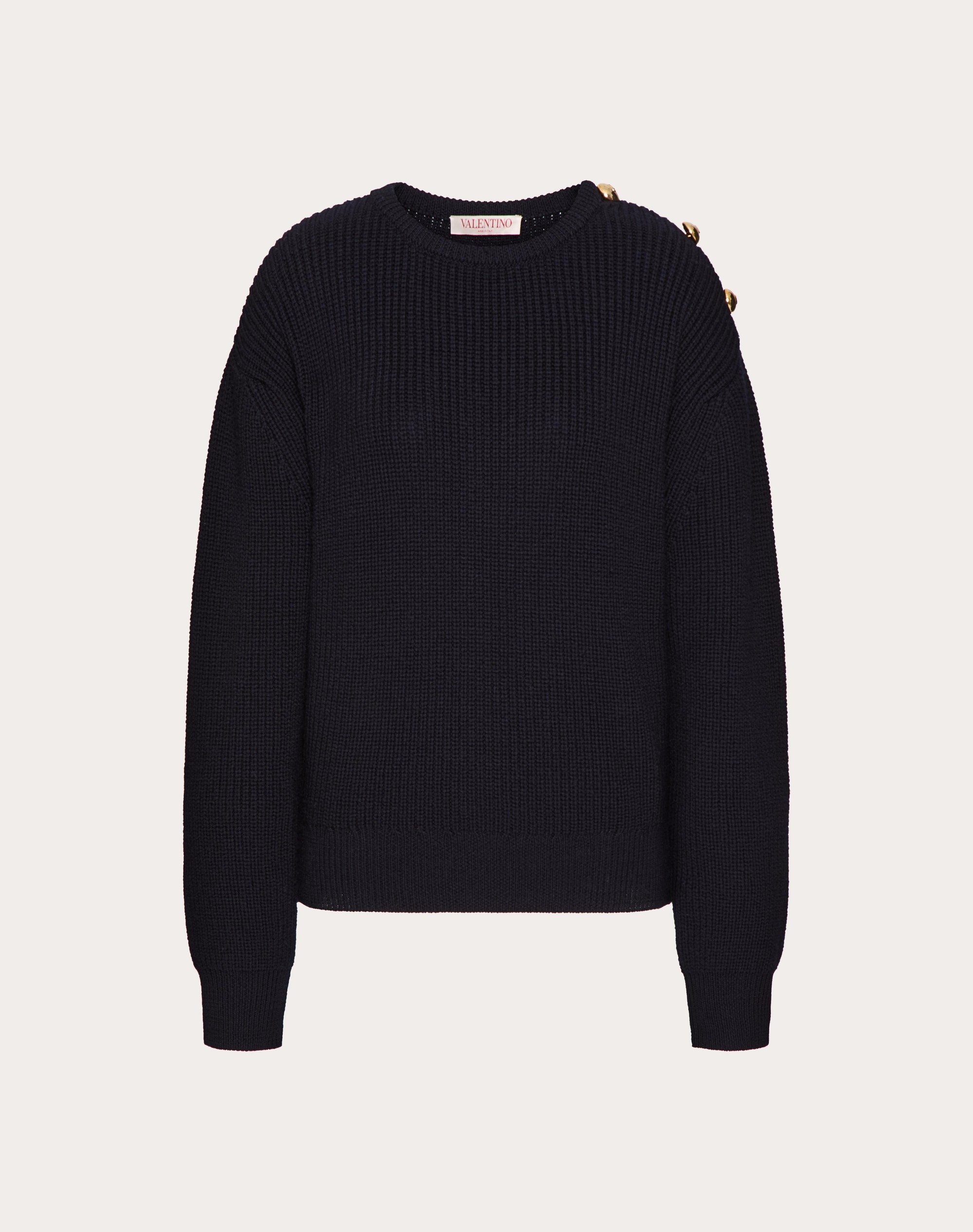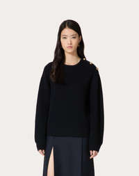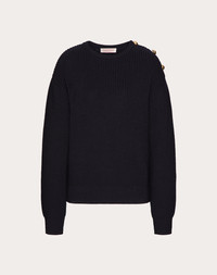Wool sweater - Button detail - Wool (100% Virgin Wool) - Length: 62 cm / 24.4 in. from the shoulders in an Italian size S - Sleeve length: 78 cm / 30.7 in. from the center back in an Italian size S - The model is 176 cm / 5'9" tall and wears an Italian size S - Made in Italy The look of the model is completed by a Valentino Garavani VLOGO MOON Bag and Valentino Garavani Shoes. Product code: 5B3KC58I8Q3_598