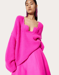 Women's wool sweater - Couture neckline detail - Oversize fit - Wool (100% Virgin Wool) - Unlined - Length from shoulders: 63 cm / 24.8 in. in Italian size S - Sleeve length: 79 cm / 31.1 in. from center back in Italian size S - The model is 176 cm / 5'9" tall and wears an Italian size S - Women's sweater - Made in Italy Product code: BKC40Q7KC_UWT