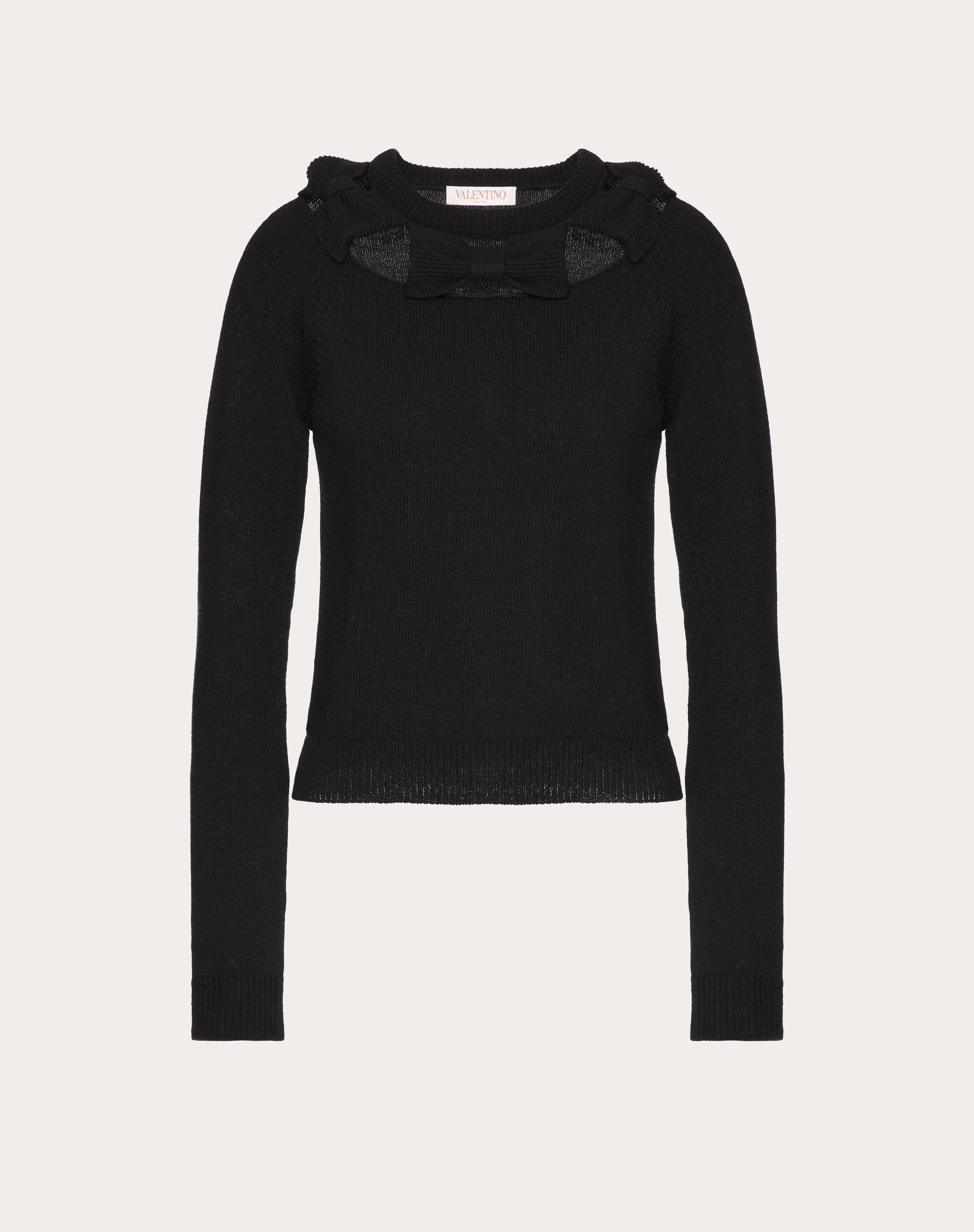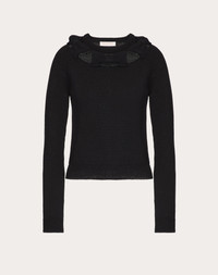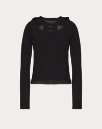 cut-out virgin-wool jumper A sense of contemporary elegance runs through Valentino Garavaniâs collections, with distinctive designs and modern silhouettes capturing the labelâs design approach. Presented in black, this virgin-wool piece from the labelâs AW23 collection showcases a cut-out design that creates a bold visual effect. Highlights - Valentino ready to wear - Black - Virgin wool - Cut-out detailing - Crew neck - Long sleeves - Ribbed trim - Straight hem - The full look includes valentino garavani accessories. Composition Lining: Polyamide 100% Outer: Virgin Wool 100% SIZE & FIT Model measurements Height 5 ft 11 in(1.8 m) Bust/Chest 32.3 in(82 cm) Hips 35.4 in(90 cm) Waist 22.8 in(58 cm)