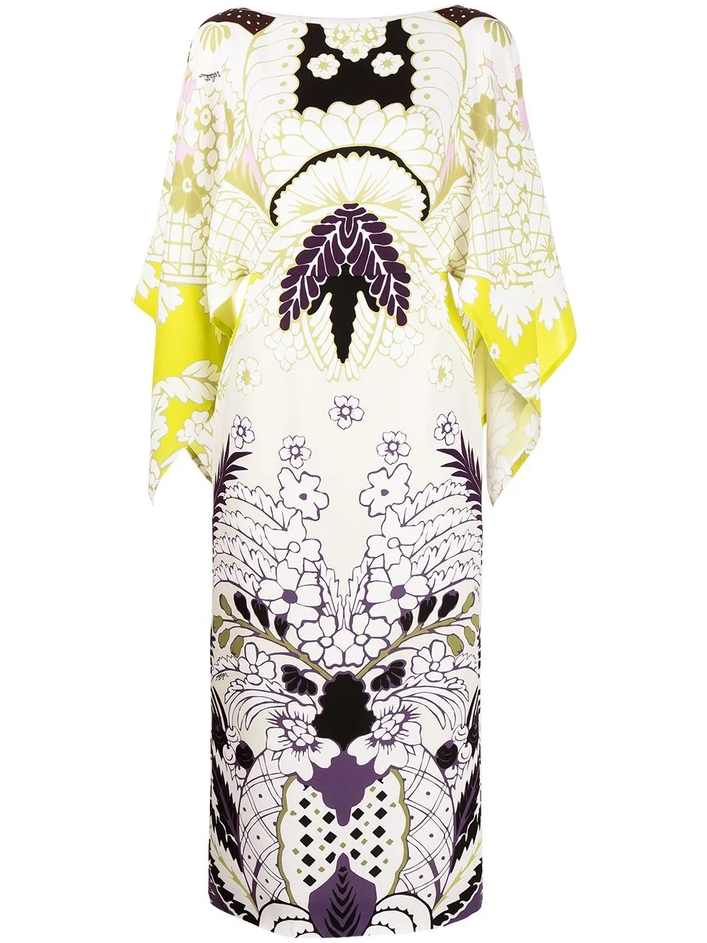 Tropical Word Arazzo kaftan dress Happiness blooms from within... your closet. Decorated with the Tropical Word Arazzo print, this kaftan dress from Valentino Garavani is here to remind you that there's no bad day a nice dress can't fix. Rise and shine. Highlights - Valentino ready to wear - White/multicolour - Silk - Tropical word arazzo print - Round neck - Concealed side zip fastening - Side hook and eye fastening - Three-quarter length sleeves - Central rear vent - Mid-length Made in Italy Composition Outer: Silk 100% Lining: Viscose 97%, Spandex/Elastane 3% SIZE & FIT Model measurements Height 5 ft 10 in(1.79 m) Bust/Chest 34.25 in(87 cm) Hips 37 in(94 cm) Waist 25.19 in(64 cm) FittingInformation This piece fits true to size. We recommend you get your regular size Designed for a close fit at the bust, waist and hips Made with a mid-weight fabric Washing instructions Read Manufacturer Guidelines