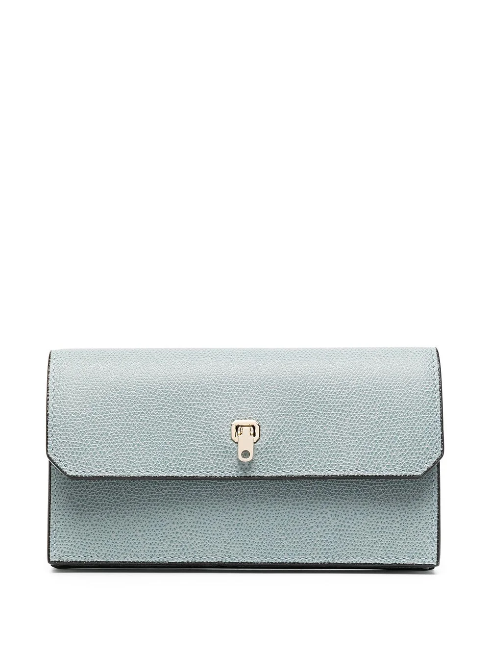 Brera continental wallet powder blue grained leather contrasting trim front flap closure flip-lock fastening internal note compartments internal zip-fastening pocket removable cardholder Made in Italy Composition Outer: Calf Leather 100% SIZE & FIT Measurement DEPTH 0.59 in(1.5 cm) LENGTH 3.93 in(10 cm) WIDTH 6.69 in(17 cm)