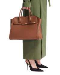 Valextra Brown Large Milan Leather Bag. Brown Millepunte leather, removable leather shoulder strap and magnetic closure. Two side straps and two flat zip pockets inside. Characteristic Costa edges on the bag handle, lacquered in black and hand-painted. Unique code inside, protective feet on the bottom. Size (cm): 34X27X17 DETAILS Model: WBMI0007010LOC99MCC Composition: 100% Leather Made in: ITALY Season: SS25