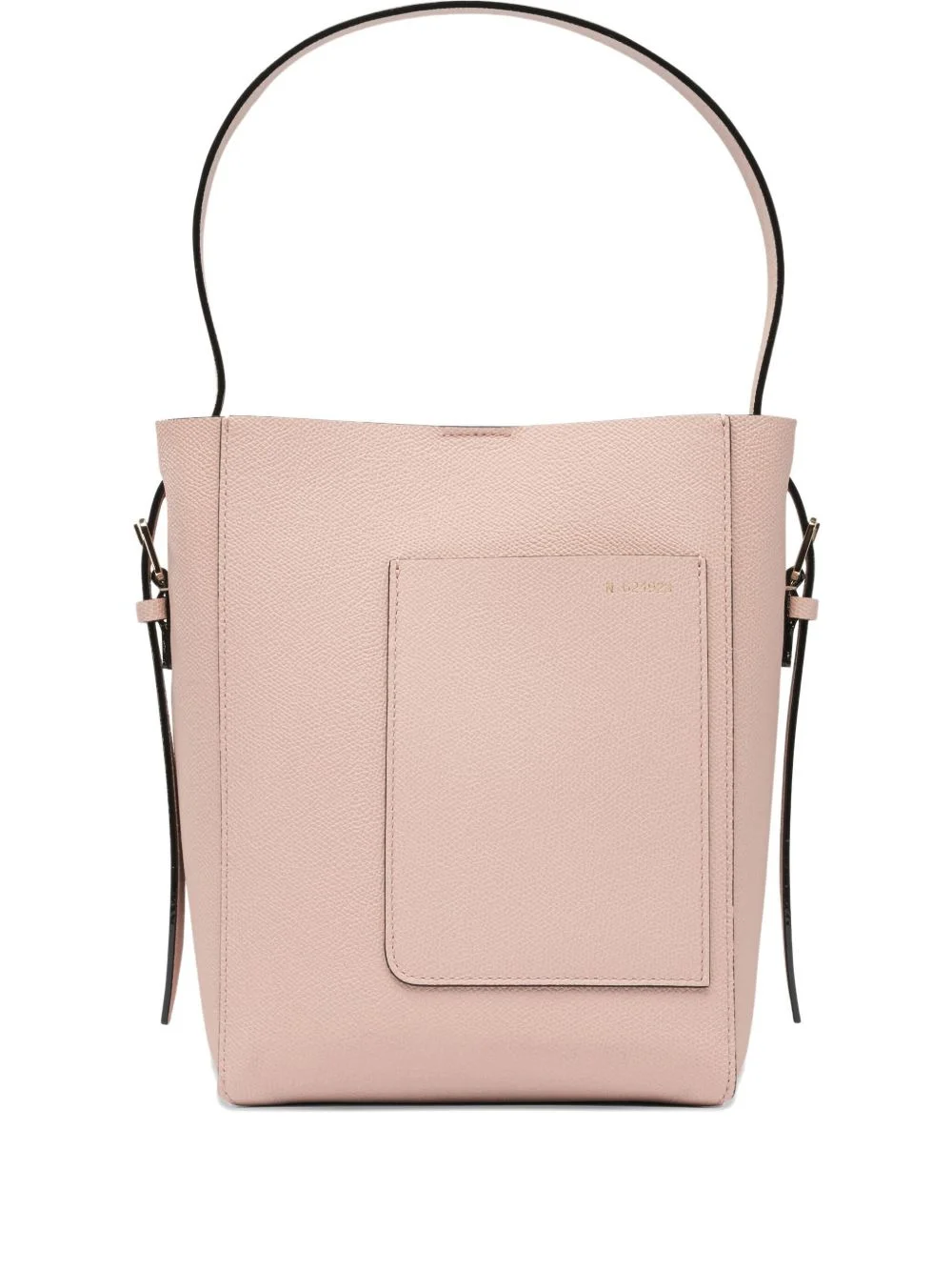 bucket-style leather tote bag Highlights - Light pink - Calf leather - Front pocket - Top handle - Buckle fastening straps - Detachable pouch Made in Italy Composition Outer: Calf Leather 100%