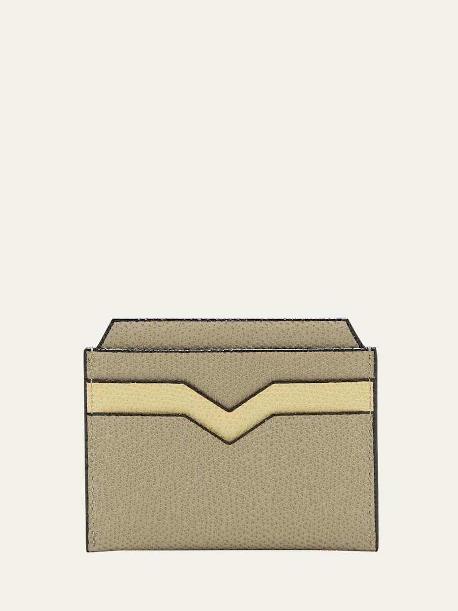 Valextra card holder in pebbled calf leather Four card slots Approx. 3.1"H x 3.5"W Made in Italy