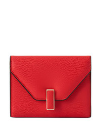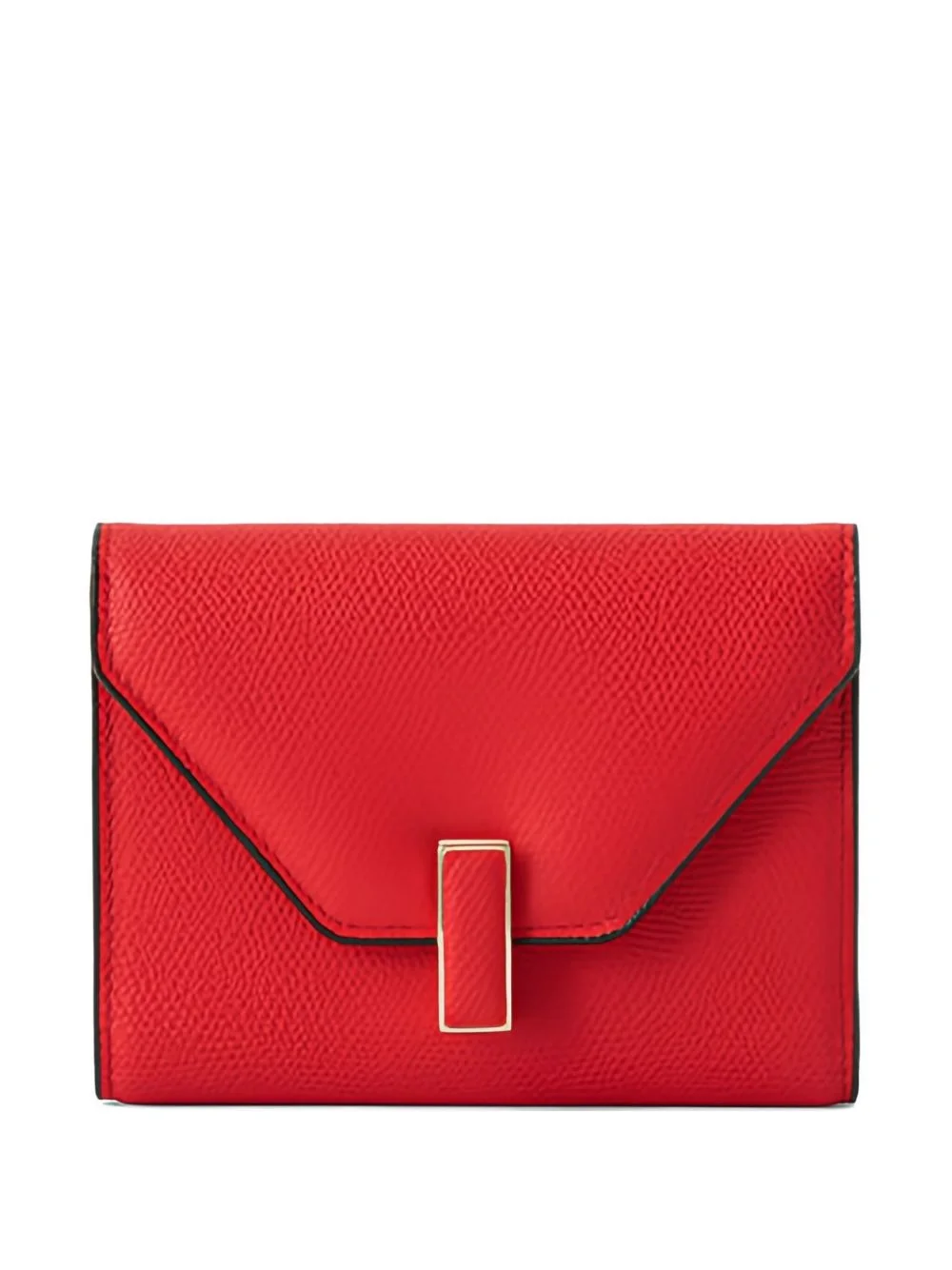 flap-closure leather wallet Highlights - Red - Gold-tone clasp - Envelope flap - Multiple internal card slots - Internal zip pocket Made in Italy Composition Calf Leather 100% SIZE & FIT Measurement DEPTH 0.78 in(2 cm) HEIGHT 3.54 in(9 cm) WIDTH 4.72 in(12 cm)