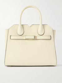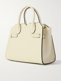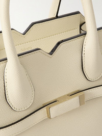 Designed to "cater to 24/7 schedules", Valextra's 'Milano' bag is inspired by the busy city that it's named after. This textured-leather style has a distinct strap that threads through the gusseted sides and comes with a shoulder strap for hands-free carrying. The interior is sized to fit your phone, wallet and a few cosmetics. Details & Care - Cream textured-leather (Calf) - Top handles, detachable and adjustable shoulder strap - Internal slip pockets - Leather lining - Magnetic fastening tabs at open top - Comes with a dust bag