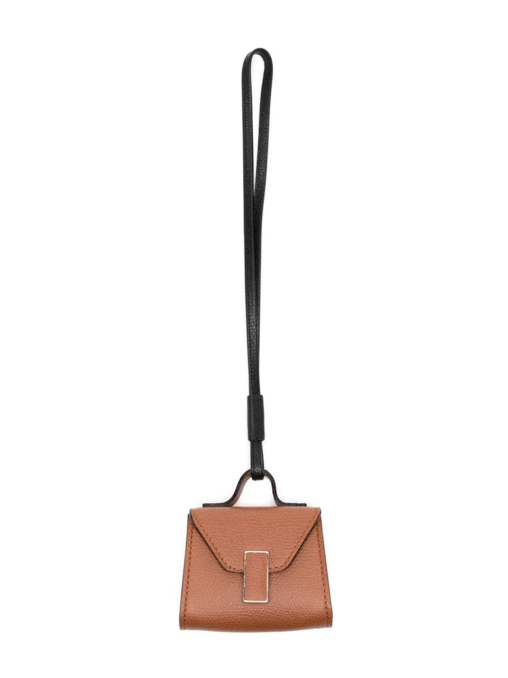Iside leather bag charm Highlights - Cognac brown - Calf leather - Grained texture - Contrasting leather strap - Foldover top with magnetic fastening - Main compartment - Gold-tone hardware Made in Italy Composition Outer: Calf Leather 100% SIZE & FIT Measurement DEPTH 1.18 in(3 cm) LENGTH 2.55 in(6.5 cm) STRAP 9.84 in(25 cm) WIDTH 3.14 in(8 cm)