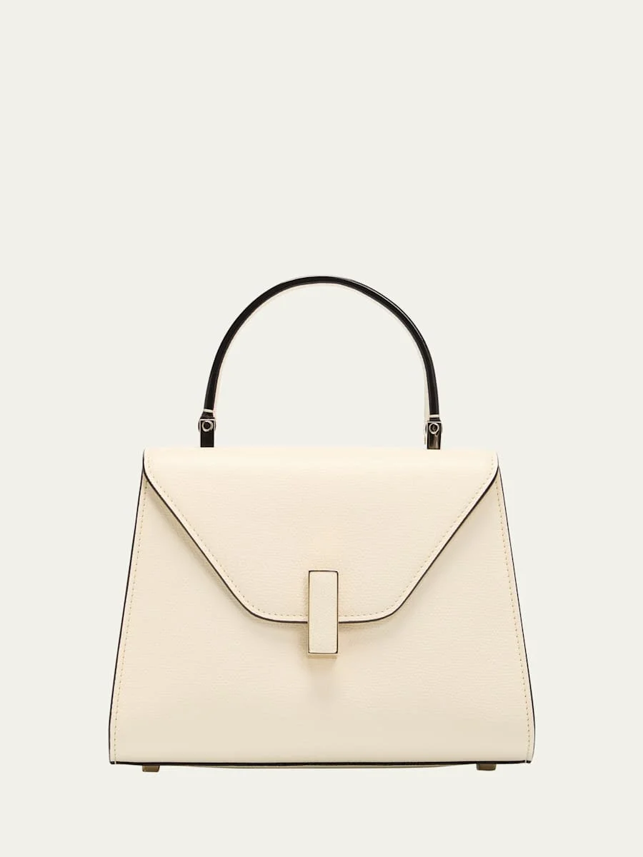 Valextra "Iside" textured leather satchel bag. Flat top handle. Envelope flap top. Inside, one zip pocket. 6.5"H x 8.7"W x 4.7"D. Made in Italy.