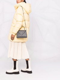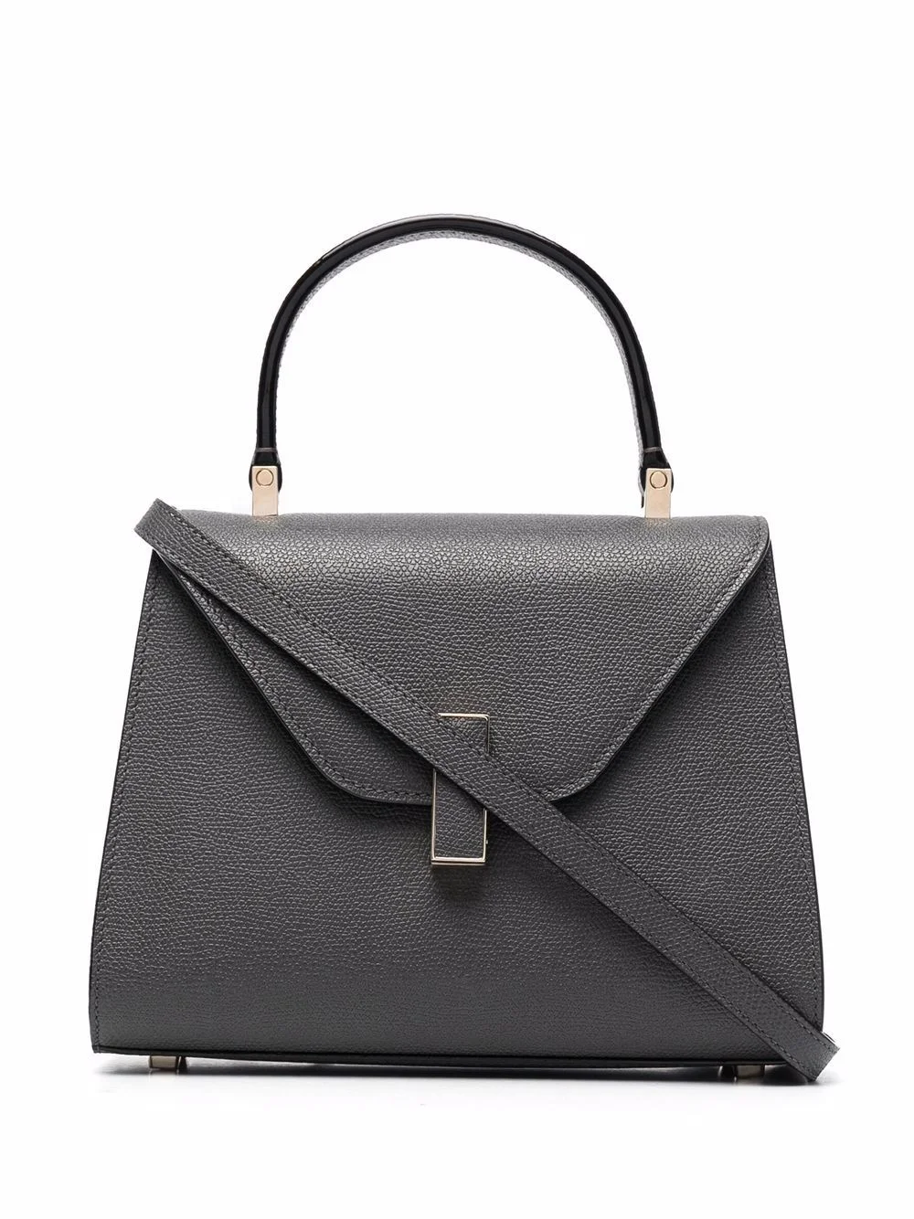 Iside mini tote bag dark grey calf leather grained texture foldover top twist-lock closure main compartment internal slip pocket single flat top handle adjustable shoulder strap metal feet Made in Italy Composition Outer: Calf Leather 100% SIZE & FIT Model measurements Height 5 ft 9 in(1.76 m) Bust/Chest 34.25 in(87 cm) Hips 36.22 in(92 cm) Waist 25.19 in(64 cm) Measurement DEPTH 4.33 in(11 cm) HANDLE 3.54 in(9 cm) HEIGHT 6.29 in(16 cm) STRAP 22.04 in(56 cm) WIDTH 8.66 in(22 cm)