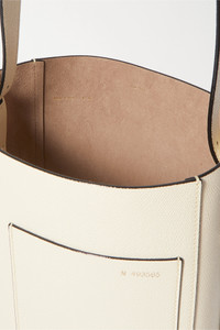 EDITORS'NOTES Valextra's 'Secchiello' tote is stamped with a gilded serial number which identifies the artisan that crafted it entirely by hand at the brand's Italian workshop. Made from cream textured-leather, it's lined in suede and has a buckled strap, so you can adjust the drop. The front slip pocket is perfect for keeping your credit cards, keys or passport close to hand. SIZE & FIT This item's measurements are: - Min. Strap Length: - 46cm - / 18.1in - Handle Drop: - 14cm - / 5.5in - Depth: - 12cm - / 4.7in - Max. Strap Length: - 78cm - / 30.7in - Height: - 25cm - / 9.8in - Width: - 21cm - / 8.3in DETAILS & CARE - Cream textured-leather (Calf) - Open top - Designer color: Pergamena - Comes with dust bag - Weighs approximately 3.5lbs/ 1.6kg - Made in Italy