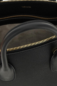 cod. WBML0041028LOC99NN 'MyLogo' mini handbag in Millepunte leather, Costa Valextra hand-lacquered piping, Bowling model, double fixed tubular handle, top zip closure with zip puller to be fixed on the side with metal safety swivel, rigid base with metal feet, adjustable and removable shoulder strap, suede lining. Color: Black Size & Fit: W 25 x H 19 x D 10 cm Composition: 100% calfskin leather (Bos Taurus) Made in: Italy