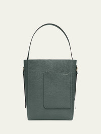 Valextra "Secchiello" bucket bag in calfskin leather Adjustable shoulder strap Open top with hook closure Exterior, front slip pocket Interior, pouch Approx. 12.2"H x 9.1"W x 5.9"D Made in Italy