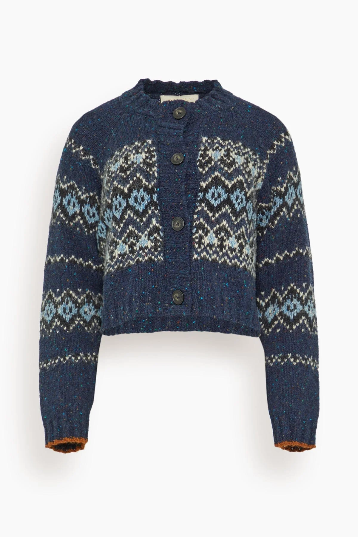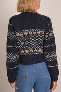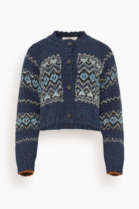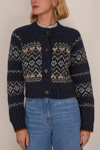 The Vanessa Bruno Damas Sweater is crafted in a nordic inspired fair isle. You'll love the relaxed fit of this cardigan with a round neckline in a warm wool blend. Wear yours with jeans and sneakers. FIT DESCRIPTION MODEL MEASUREMENTS - Fits true to size, take your normal size - Cardigan - Fair isle - Relaxed fit - Round neckline - Ribbed trim - 58% Wool, 21% Polyamide, 19% Viscose, 2% Cotton