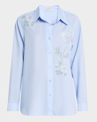 Floral-Print Button-Down Blouse