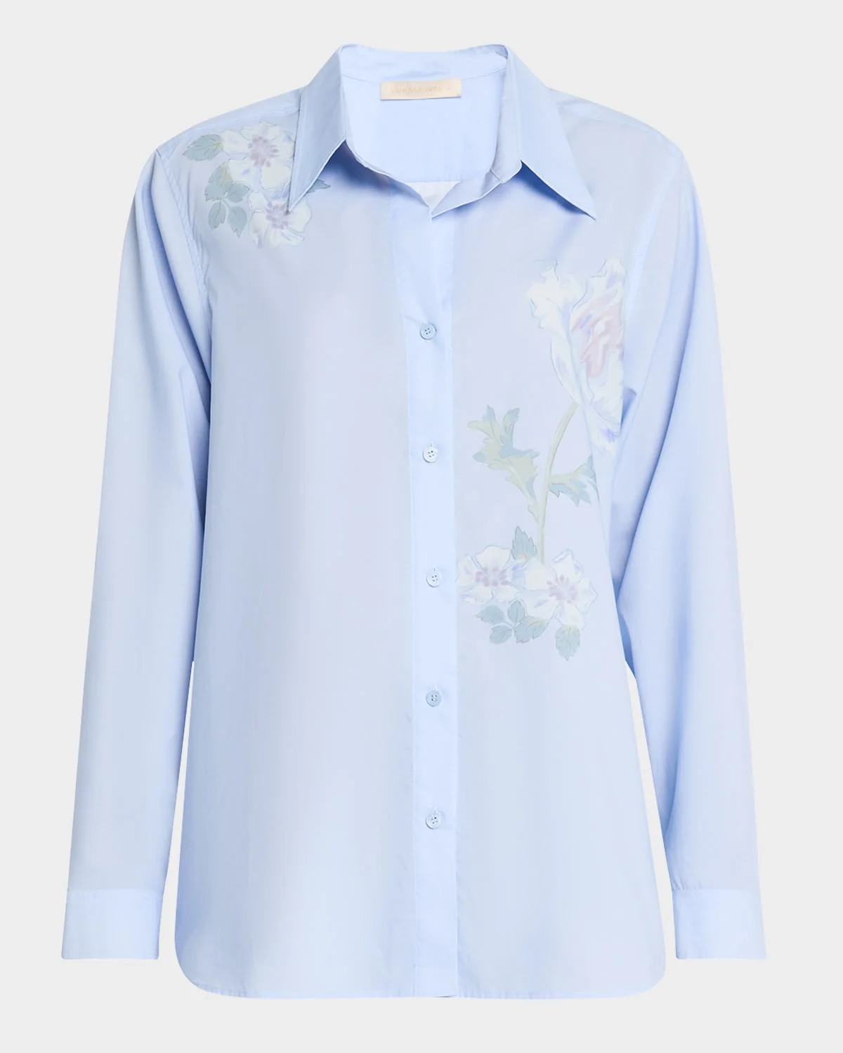 Vanessa Bruno blouse features a placed floral print Spread collar; button front Long sleeves; approx. 21.5"L Button cuffs Shirttail hem Relaxed fit Lyocell/cotton Unlined Machine wash Imported
