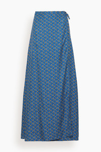 The Vanessa Bruno Frika Skirt can easily transition from day to night. This maxi skirt in a beautiful geometric pattern with a classic tie wrap front. Wear yours with a blouse and flats. - Maxi length - Relaxed fit - High rise - Tie wrap front - 60% viscose, 40% silk