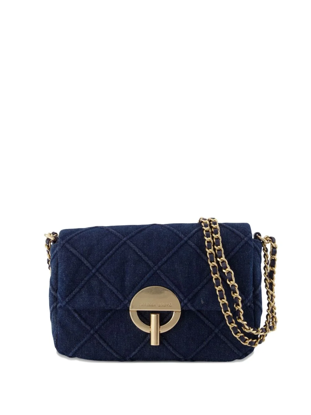 medium Moon quilted chain-strap shoulder bag Highlights - Blue - Quilted design - Circular clasp - Chain strap - Cotton material - Gold-tone hardware Imported Composition Outer: Cotton 100% SIZE & FIT Measurement DEPTH 2.36 in(6 cm) HEIGHT 5.31 in(13.5 cm) WIDTH 8.26 in(21 cm)