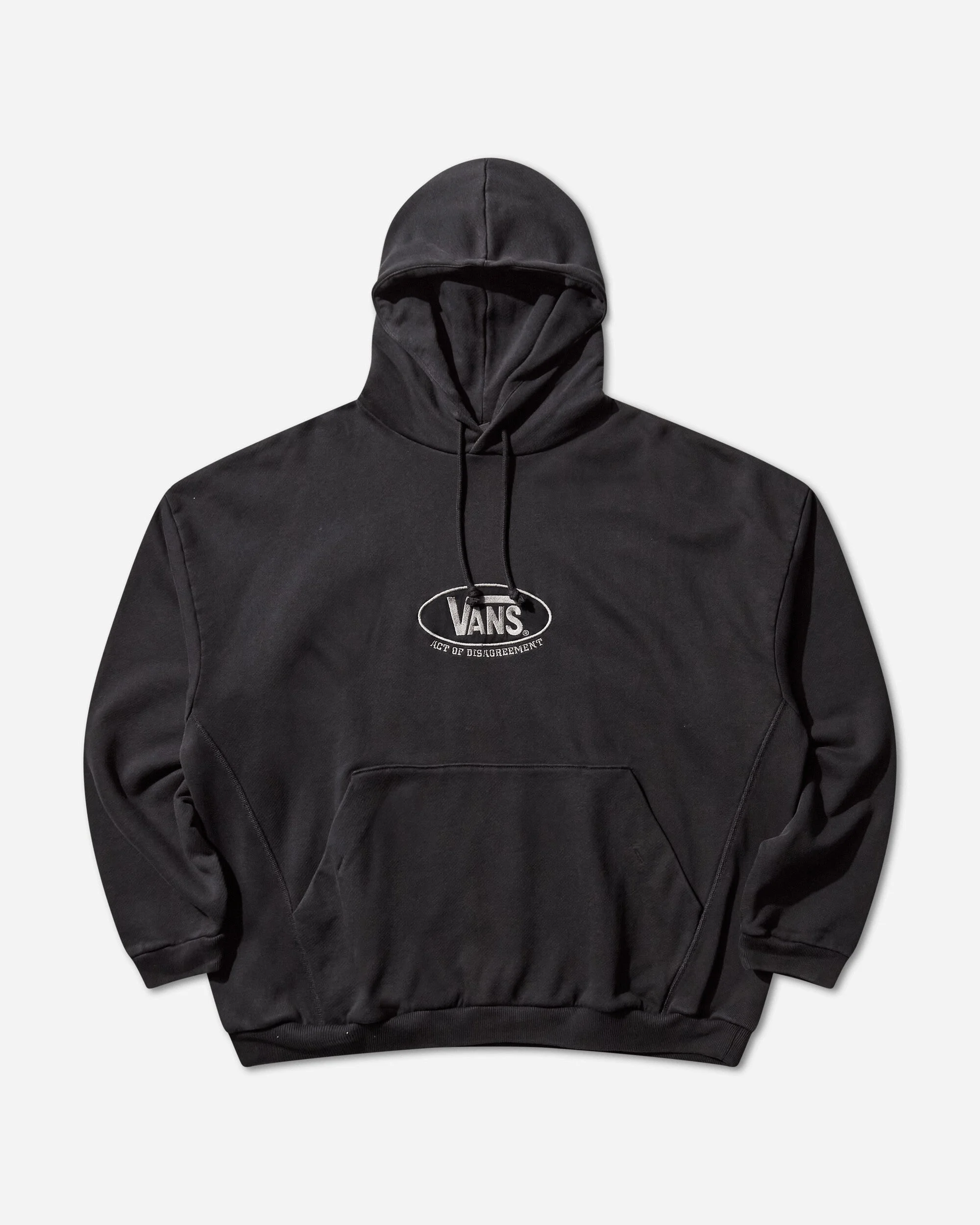 Vans Act of Disagreement Oval Logo Hoodie Washed Black Vans and Slam Jam present Act of Disagreement, a new apparel range representing the Style and Mentality of the Bedroom Generation. Heavyweight 470 gsm 100% cotton fleece. Oversized fit. Embroidered Vans logo with twill inserts on the chest. Rib inserts on the sides. Vintage wash. Slam Jam branded trim inside on the care label. - 100% Cotton - Oversized Fit - Vintage Wash - Drawstring Hood - Embroidered Logo at Front - Kangaroo Pocket - Ribbed Cuffs and Hem - Style Code: VN000RPZEMQ1