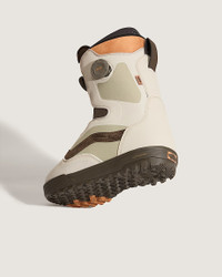 Style VN0A54G1EMF Featuring comfort, control, and style that only Vans can offer, the Aura Pro delivers on its versatile, hardworking reputation as the boot built to perform in all conditions. A dual-zone BOA® Fit System featuring Vans Custom Focus provides unlimited on-the-fly micro-adjustability backed by the customizable comfort and heel hold of the Custom Slide Guide. Add in a thermoregulating liner and high traction outsole for the sidecountry, and the Aura Pro exceeds expectations for comfort and performance. Details - Backcountry and all-mountain boot - Flex rating: 5-6 - Skill Level: intermediate to advanced - V2 UltraCush™ with Smartwool Liner uses odor-resistant, thermoregulating Smartwool Merino wool and an UltraCush™ cushioning layer for a liner that is warm but breathable, with a Comfort Flex neoprene toe box and X-Cage for superior heel hold - V2 PopCush™ Footbed utilizes dual-density PopCush™ construction, a 3D-molded anatomical shape, airflow perforations, and a TPU arch support heel clip for stability while allowing for torsional flex - Instep Flex Zone maintains natural ankle flexion in your boot, even strapped into your bindings - PleasureCuff's supple elasticity delivers a cushioned, comfortable fit, keeping your calves supported - V2 Harness allows for customizable heel hold, working in tandem with the V2 liner for enhanced support and a personalized fit - Footbed's nylex moisture-wicking top-sheet keeps you dry and comfortable - Heat Retention 360° uses a layer of 200g insulation over the toes so they stay warm during the coldest temps. With a liner material of neoprene and EVA, moisture is wicked away from the foot - V2 Waffle Pro Outsole with All-Trac Cold Weather Rubber Compound provides natural flex and a weight-reducing, impact-resisting UltraCush midsole provide sensitive boardfeel, while a Vans-exclusive lug tread pattern gives you the traction you need to explore the sidecountry with confidence - BOA® Fit System with Vans Custom Slide Guide features a high-power coiler dial and mid-power remote dial to control three zones of fit, delivering concentrated fit around the instep area for focused heel hold