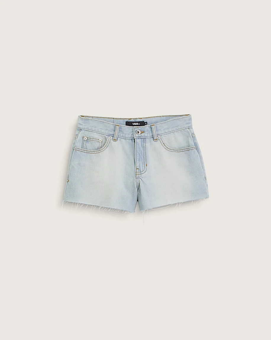 Style VN0010CYTTJ Inspired by skate culture, these Check 5-Pocket shorts deliver authentic style with a fitted silhouette. Premium cotton denim provides comfortable durability, while the raw-edge hem and stone wash finish give them a perfectly broken-in look and feel right out of the gate. With classic 5-pocket styling and subtle Vans branding, these shorts are ready for your everyday adventures. Details - Fitted silhouette for a sleek, flattering look - Raw-edge hem for a laid-back vibe - Classic 5-pocket styling with coin pocket - Stone wash finish for a vintage feel - Zipper fly with button closure - 100% cotton