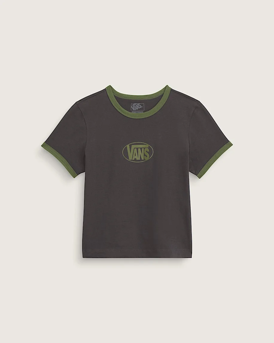 Style VN000W31EMV This women's ringer tee brings back '70s style with contrasting trim and a vintage oval Vans logo. The soft cotton fabric and classic fit make it a comfy go-to for casual days, while the retro design adds a touch of nostalgia to your look. Rock it with jeans and sneakers for an effortlessly cool outfit that nods to Vans' heritage. Details - Soft cotton fabric for all-day comfort - Contrasting ringer trim on neck and sleeves - Vintage oval Vans logo on chest - Classic fit for easy movement - 100% cotton