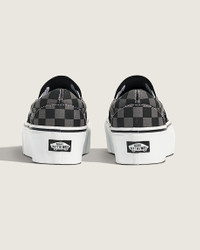Style VN000E8CHR0 The Classic Slip-On Stackform refreshes our original slip-on silhouette with an even chunkier take on the platform aesthetic. Constructed with an exaggerated sidewall for double the height, this platform shoe amplifies a classic favorite while bringing a new “Off The Wall” style to your look. Details - Slip on platform shoe - Padded collar for support and comfort - Elastic side panels for easy slip-on and off - Feature a 1.6” (40 mm) platform height - Rubber sidewall with classic foxing stripe - Vulcanized build for the original look and feel - Signature waffle outsole pattern for reliable grip since '66 - Checkerboard branding is unmistakably Vans - Canvas upper for a light but durable finish
