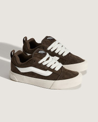 Style VN000D6ZEMP Born in ’98, the Knu Skool took inspiration from the iconic Old Skool to create something entirely its own. Oversized laces, a puffed tongue, and a plush collar captured unapologetic ’90s style, all grounded on Vans’ signature vulcanized sole. Details - Reissued '90s low-top shoe - Suede upper for a soft, textured finish - Oversized tongue and padded collar for extra comfort - Wide laces for bold style and adjustable, secure fit - Heel pulls for ease of entry - Puffy 3D Sidestripe™ blends throwback style with a modern edge - Rubber sidewall with classic foxing stripe - Signature waffle outsole pattern for reliable grip since '66 - Vulcanized build for the original look and feel