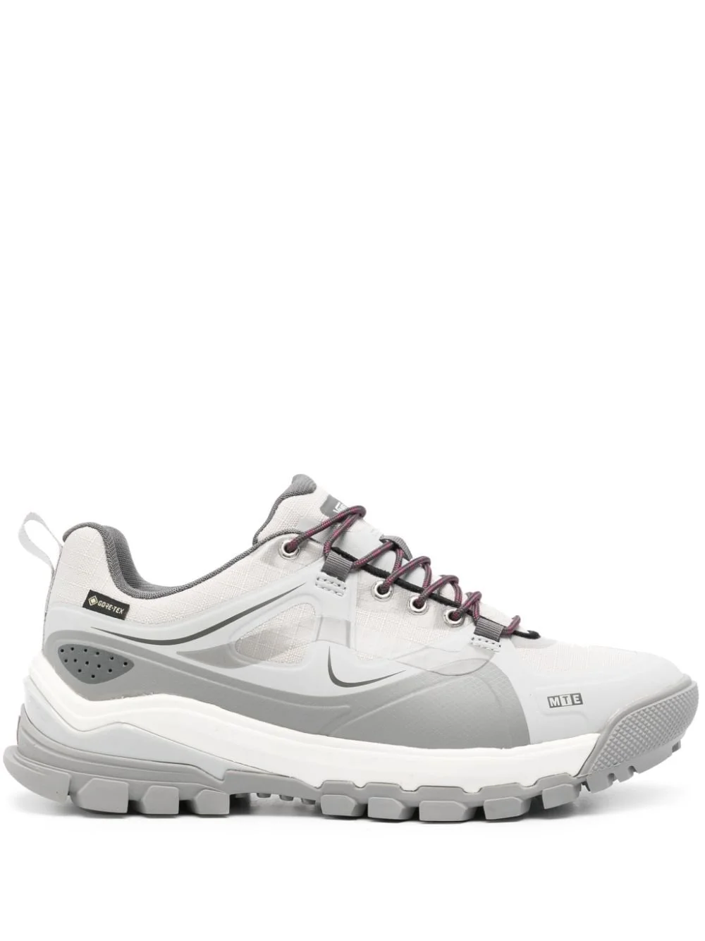 lace-up panelled sneakers Highlights - Light grey - Panelled design - Round toe - Perforated toebox - Perforated detailing to the side - Applique logo to the tongue - Logo print to the side - Pull-tab at the heel - Padded ankle - Branded insole - Waterproof gore-tex® material - Logo at the sole - Rubber lug sole - Front lace-up fastening Imported Composition Sole: Rubber 100% Outer: Fabric 100%, Rubber 100% Lining: Fabric 100% SIZE & FIT Measurement HEEL 1.37 in(3.5 cm) Sole height 0.78 in(2 cm)
