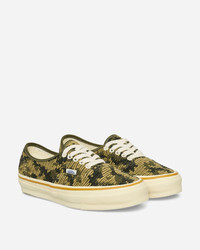 Vans Premium Authentic 44 Camo Sneakers Antique Gold Originally known as the Style 44, Vans' first gift to the world in 1966 was its Authentic LX model, a testament that could tell the story of California in the 70s, export skate culture to the world, and become a silhouette for all generations. Timeless. - Canvas Upper - Woven Flag Label - High Foxing Tape - Vulcanized Midsole - Gum Rubber Sole - Style Code: VN000D5K18S1