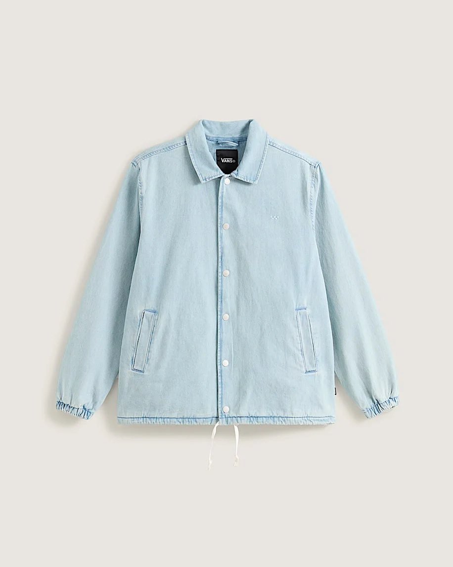 Style VN000T7KTTJ This coach jacket brings a relaxed vibe to the traditional denim look. The lightweight construction and classic silhouette make it an easy-wearing essential for everyday style. With a button front, collar, and side pockets, it's got all the coach jacket hallmarks in a softer, more casual package. The elastic cuffs and drawcord hem let you adjust the fit, while the washed denim gives it that perfectly broken-in feel right from the start. It's the kind of piece you'll find yourself reaching for again and again, whether you're headed to the skatepark or just out running errands. Details - Button front closure for easy on and off - Side pockets to stash essentials - Elastic cuffs and drawcord hem for adjustable fit - Lightweight denim construction for comfortable wear - Classic coach jacket silhouette - Standard fit for a relaxed, easy feel - 100% cotton
