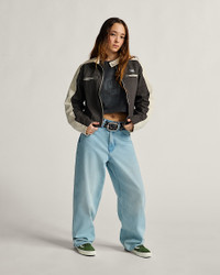 Style VN000R3HEMV Contrasting color blocking makes the Ryden Biker Jacket an elevated take on the classic biker silhouette, with two-tone twill for rugged durability. Zippered sleeves allow for adaptability, while embroidered artwork adds premium detailing with a Vans logo on the chest. Details - Long sleeve biker jacket - Two tone twill - Zippered chest pockets and sleeves - Embroidered logo on chest - 100% cotton