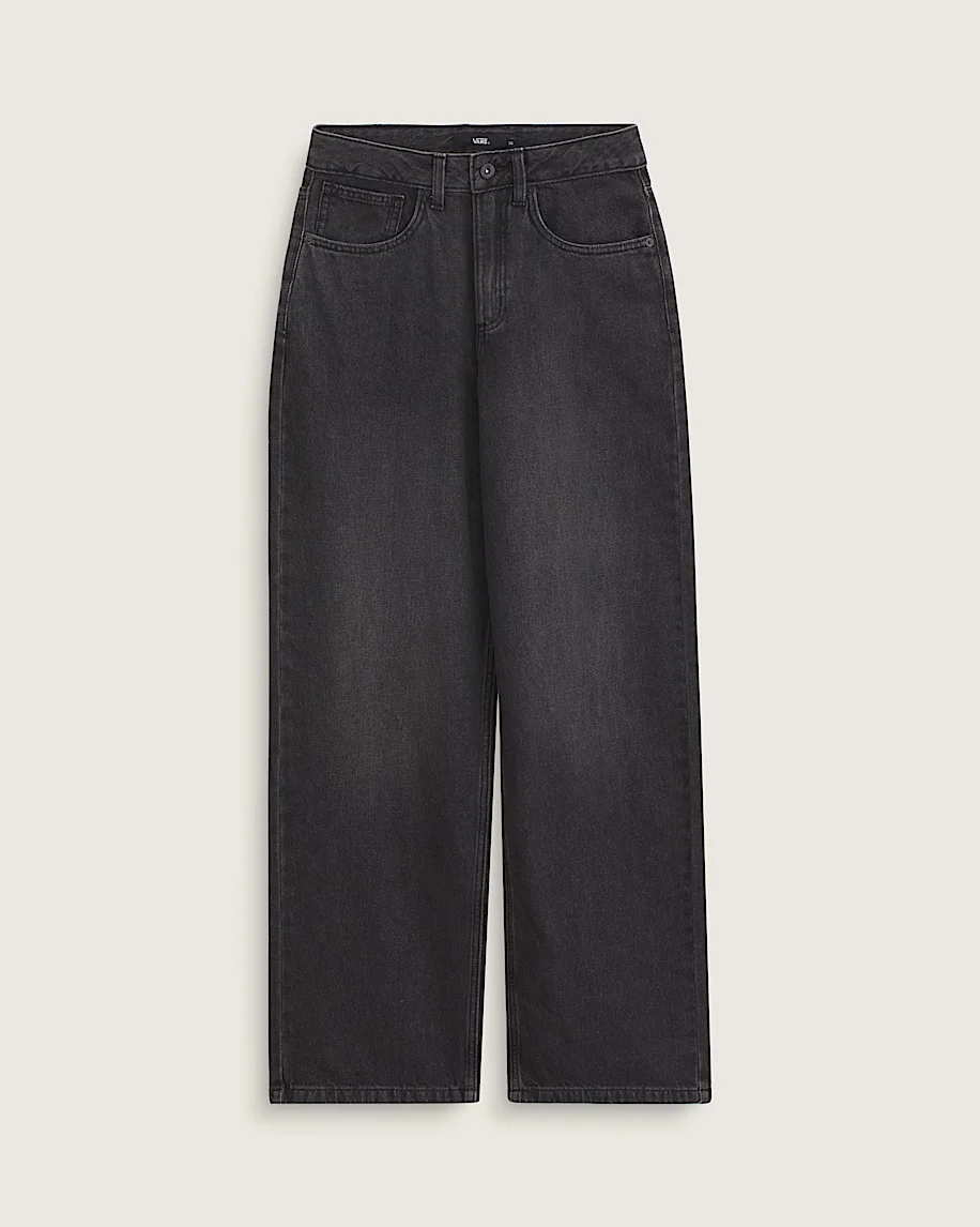 Style VN000MB5BLK Kick back in the Sirelle 5 Pocket Denim Puddle Pants, a pair of rugged denim pants in a classic puddle silhouette, with long, wide legs that pool around your ankles. With tons of pockets to carry everything you need, these loose-fit pants are ready for whatever the day brings you. Details - Loose fit for extra room and laid-back wear - Mid-rise with puddle-length leg - 5-pocket detailing for a classic look - 10 oz. denim with PP spray for lived-in fading - 100% cotton