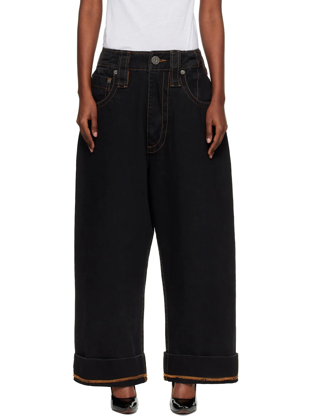 Non-stretch denim jeans. · Wide-leg · Low-rise · Belt loops · Five-pocket styling · Zip fly · Rolled cuffs · Logo patch at back waistband · Contrast stitching in tan Supplier color: Black 100% cotton. Made in Tunisia 252999F069000