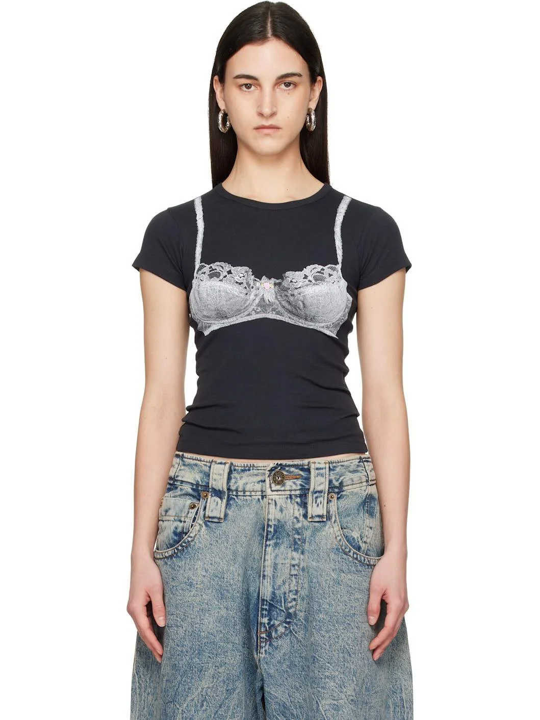 Cotton jersey T-shirt. · Rib-knit crewneck · Trompe l'oeil graphic printed at chest Supplier color: Washed Black 100% cotton. Made in Turkey 261999F110001